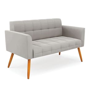 Sofá Namoradeira Elisa Veludo Cinza Pés Palito Castanho - D'rossi