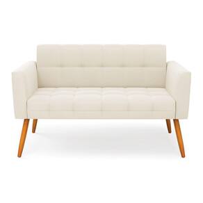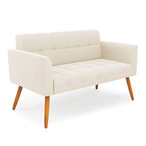 Sofá Namoradeira Elisa Veludo Pés Palito Castanho - D`Rossi - Bege