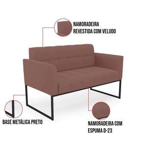 Você gosta de colecionar vários momentos memoráveis com sua família e amigos? Que tal recebê-los, com móveis de altíssima qualidade que só a DRossi tem? A Namoradeira 2 Lugares Elisa é adequada para você! Seu design retrô é a grande tendência do momento. Pode ser usada em diversos espaços da casa, em salas, hall de entrada, quartos, cozinhas, varanda, sacada, escritório, dentre outros. Contém as seguintes características: A estrutura é feita de madeira de Eucalipto 100% de reflorestamento, e a Base Metálica Industrial Preto, além de ser resistente e durável, suporta em média até 120 kg. Assento, encosto e braços, contém enchimento de espuma D-23 e é estofada em tecido Veludo, no tom Rosê, que oferece muito conforto e resistência ao sentar, com aquela sensação de maciez e aconchego. Possui também, detalhes de costura no encosto e assento, resultando em um acabamento impecável, conferindo muito mais valor e elegância ao seu espaço. Para complementar a decoração com essa linda namoradeira, a dica é utilizar mantas, almofadas ou vasinho de flor. E pronto, seu cantinho estará perfeito para descansar e relaxar! Aqui, você encontra várias opções, para que seus amigos e familiares se sintam acolhidos. Garanta já sua Namoradeira Elisa.