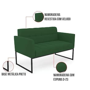 Você gosta de colecionar vários momentos memoráveis com sua família e amigos? Que tal recebê-los, com móveis de altíssima qualidade que só a DRossi tem? A Namoradeira 2 Lugares Elisa é adequada para você! Seu design retrô é a grande tendência do momento. Pode ser usada em diversos espaços da casa, em salas, hall de entrada, quartos, cozinhas, varanda, sacada, escritório, dentre outros. Contém as seguintes características: A estrutura é feita de madeira de Eucalipto 100% de reflorestamento, e a Base Metálica Industrial Preto, além de ser resistente e durável, suporta em média até 120 kg. Assento, encosto e braços, contém enchimento de espuma D-23 e é estofada em tecido Veludo, no tom Verde, que oferece muito conforto e resistência ao sentar, com aquela sensação de maciez e aconchego. Possui também, detalhes de costura no encosto e assento, resultando em um acabamento impecável, conferindo muito mais valor e elegância ao seu espaço. Para complementar a decoração com essa linda namoradeira, a dica é utilizar mantas, almofadas ou vasinho de flor. E pronto, seu cantinho estará perfeito para descansar e relaxar! Aqui, você encontra várias opções, para que seus amigos e familiares se sintam acolhidos. Garanta já sua Namoradeira Elisa.