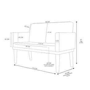 Espuma acento e braços com densidade D-26, e encosto com densidade D-23;