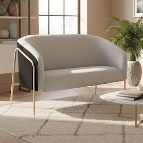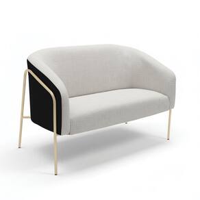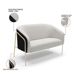 Sofá Namoradeira Stella Industrial Alta Champanhe Sintético Pu Preto Linho Cinza D03 - D`rossi