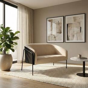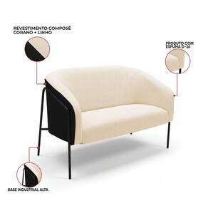 Sofá Namoradeira Stella Industrial Alta Preta Sintético Pu Preto Linho D03 - D'rossi Cor Preto/linho Bege A Namoradeira Stella Base Alta Sintético PU é um móvel que une design moderno, conforto e sofisticação, ideal para compor salas de estar, recepções e ambientes decorativos. Seu formato elegante e estrutura elevada valorizam o espaço, trazendo leveza e requinte à decoração. Produzida com estrutura em madeira de eucalipto reflorestado e base em aço tubular na cor preta, garante durabilidade, estabilidade e resistência. O assento em espuma D-26 proporciona firmeza e conforto, enquanto o encosto e os braços em espuma D-23 oferecem um toque macio e ergonômico, se adaptando perfeitamente a diferentes estilos de decoração, do clássico ao contemporâneo. A namoradeira é perfeita para quem busca um sofá pequeno e sofisticado, unindo beleza, qualidade e conforto. O acabamento refinado e o design atemporal fazem dessa peça uma excelente escolha para transformar o ambiente com elegância e estilo. Dimensões do Produto: Altura Total: 80 cm Largura Total: 120 cm Profundidade Total: 63 cm Altura Interna do Encosto: 39 cm Espessura do Braço: 13 cm Altura do Braço ao chão: 70 cm Profundidade do Assento: 45 cm Altura do chão ao Assento: 45 cm Peso: 19 kg Especificações do Produto: Estrutura: Madeira Eucalipto; Base em Aço Revestimento: Sintético PU e LinhoMaterial do Estofamento: Assento D-26; Encosto e braço D-23 Quantidade de Lugares : 2 Lugares Sofá Possui Braça: Não Peso Suportado: Até 120 Kg Tipo de Pés: Base Industrial Tubular Alta Tipo de Encosto: Fixo Tipo de Assento: Fixo É retrátil: Não É reclinável: Não Diferenciais: Modelo Orgânico; Design moderno e acolherdor, ideal para duas pessoas. Montagem: O produto vai montado, apenas parafusar a base Complexidade da Montagem: Baixa Garantia: 90 dias contra defeito de fabricação Instruções de Limpeza: Utilizar um pano limpo e levemente úmido Quantidade de Volumes: 1 Caixa Medida das Embalagens: Caixa 1 : 119 x 69 x 59 cm Peso Produto Embalado: 21 kg Entrega: É feita somente até o térreo ou portaria. Confira sempre as medidas das embalagens para assegurar que o produto passe por portas e escadas do local.
