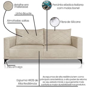 Modelo:Sofa Nori 2 Lugares Pes De Ferro 160cm Linho Boucle