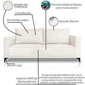 Modelo:Sofa Nori 3 Lugares Pes De Ferro 220cm Linho Boucle