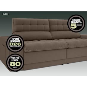 Sofá Omega 2,00m Assento Retrátil e Reclinável Velosuede - NETSOFAS - Marrom