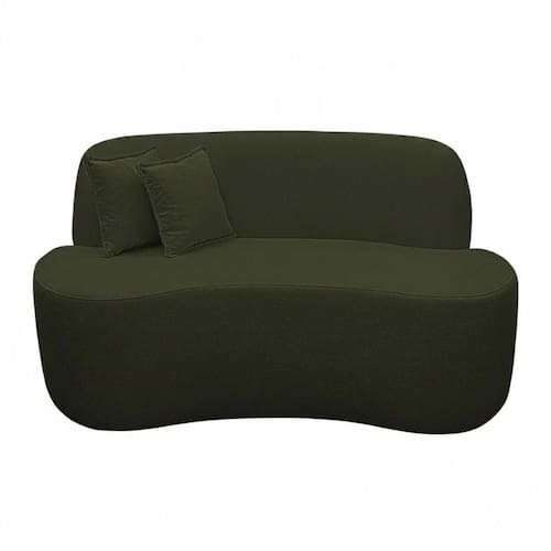 Sofá Ondulado Orgânico Pequeno 2 Lugares Sala Bouclé Verde Musgo