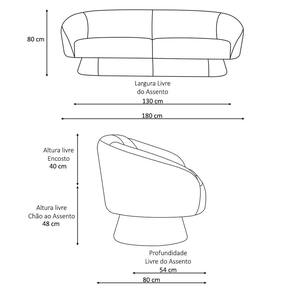 MedidasAltura Total: 80 cmLargura: 180 cmProfundidade: 80 cmPeso: 57 kgAltura do Encosto: 40 cmAltura do Assento ao Chão: 48 cmLargura do Assento: 130 cmProfundidade do Assento: 54 cmAltura dos Pés: 25 cm