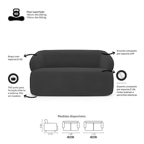 Detalhes que Fazem a Diferença: Os braços do sofá são compostos por espuma D-20, garantindo conforto adicional. Os pés de madeira proporcionam estabilidade e um toque natural ao design.