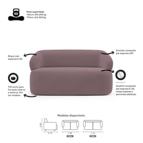 Detalhes que Fazem a Diferença: Os braços do sofá são compostos por espuma D-20, garantindo conforto adicional. Os pés de madeira proporcionam estabilidade e um toque natural ao design.
