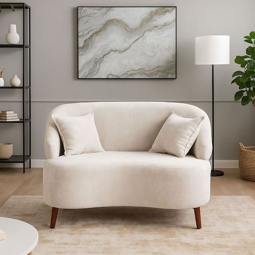 Sofá Orgânico Curvo 2 Lugares Feijão Suede Bege