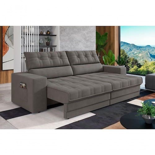Sofá Oscar Plus 2,06m Retrátil/Reclinável Suede Elegância e Conforto em Um Só Lugar