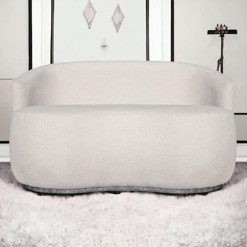 A Namoradeira 2 Lugares é perfeita para quem busca estilo e funcionalidade. Seu tecido bouclé bege com detalhe em calacata cinza traz um toque contemporâneo e acolhedor ao espaço.