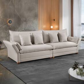 Sim, todas as almofadas são soltas e podem ser reorganizadas com facilidade. Produto Montado: Sim Acompanha Almofadas extras: 04 Almofada do assento: Removível Almofada do encosto: Removível Altura do assento até o chão: 78.0000 Altura do Encosto: 36 cm Altura dos Pés: 4,5 cm Altura Máxima dos Pés: 4.5000 Ambiente Principal: Sala de Estar codigo_ean: 7900288122155 Complexidade da Montagem: Baixa: pode ser montado por uma pessoa sozinha Cor: Bege Cor do Produto: Bege Estilo de Braço: Braços Quadrados Itens Inclusos: 1 Sofá e Manual de Montagem Marca: Estofados Martins Material dos Pés: Madeira Maciça Montagem Flex: Não Necessita Montagem: Sim Origem do Produto: Nacional Peso: 100,8 kg Pet Friendly: Não Possui Mola: Sim Possui Percintas Elásticas: Sim Possui Pés: 08 Possui Rodízio: Não Recomendações de Uso, Manutenção e Limpeza: Não use produtos químicos, eles podem danificar o revestimento; Sistema de Montagem: Kit de Parufusos e Pés. Suporta Até (kg): 120 kg Tecido Predominante: Linho Tipo de Encosto: Fixo Tipo de Mola: Molas Bonnel Tipo de Sofá: Sofá Comum Marca: Estofados Martins