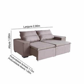 Medidas do Produto:Altura: 1,05mtCumprimento fechado: 1,25cmCumprimento aberto: 1,60cmLargura: 2,90cmInformações Extras:Peso suportado: 120kg por pessoaGarantia: 3 mesesFabricante: De casa décor e estofadosInformações Importantes:- OS TECIDOS PODEM SOFRER ALTERAÇÕES DE TONALIDADES DEPENDENDO DO LOTE DE PRODUÇÃO E TAMBÉM DA RESOLUÇÃO DA TELA DO SEU MONITOR/CELULAR.- Os objetos que ambientam as fotos não acompanham o produto.