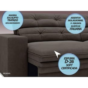 Enchimento do Assento: Espuma D-26 SOFT, Percinta Elástica e Molas Bonnel.