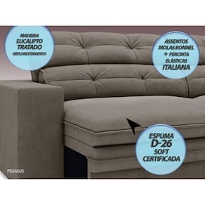 Enchimento do Assento: Espuma D-26 SOFT, Percinta Elástica e Molas Bonnel.