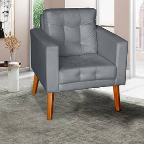 Sofá Poltrona Cadeira Decorativa E Descanso Glamour Dubai Com Pés Em Madeira Cinza