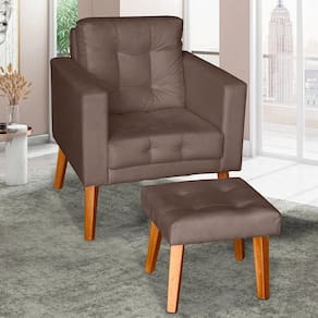 Poltrona Glamour Dubai com pés em Madeira e com Puff Conforto e Sofisticação em Cada Detalhe