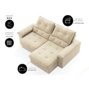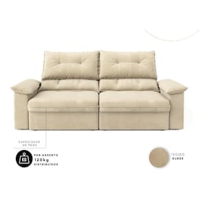 Sofá Ravena Retrátil e Reclinável 3 Lugares 2 assentos Suede 180cm - Bege