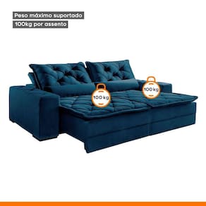 O assento de pillow com espuma elástica D28 certificada, a base do assento com molas espirais e percinta elástica de alta resistência. Possui também mecanismo retrátil em aço que permite abertura do sofá para sua maior comodidade.