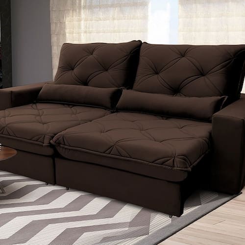 O Estofado Nebraska 2,50 marrom combina conforto, durabilidade e design sofisticado, sendo a escolha ideal para sua sala de estar. Equipado com percintas italianas, fibras siliconadas e flocos de espuma, oferece um assento macio e acolhedor. Suportando até 120 kg, é robusto e ideal para toda a família. O revestimento marrom adiciona elegância moderna, adaptando-se a diversos estilos de decoração. Invista no coração da sua casa com o Estofado Nebraska e transforme seu espaço de convivência com conforto e beleza incomparáveis.4o Produto Montado: Sim Acompanha Almofadas extras: Não Almofada do assento: Fixa Almofada do encosto: Fixa Altura do assento até o chão: 0.4700 Altura do Encosto: 107 cm Altura dos Pés: 3 cm Ambiente Principal: Sala de Estar codigo_ean: 7909903689769 Complexidade da Montagem: Baixa: pode ser montado por uma pessoa sozinha Cor: Platinum Marrom Cor do Produto: Platinum Marrom Densidade do Assento: D-28 Enchimento do Assento: Espuma Enchimento do Encosto: Espuma Firmeza do Assento: Firme Itens Inclusos: 1 Sofá Material dos Pés: PVC Necessita Montagem: Sim Peso: 92 kg Pet Friendly: Não Possui Percintas Elásticas: Sim Possui Pés: 08 Possui Rodízio: Sim Profundidade Quando Estendido: 175 Recomendações de Uso, Manutenção e Limpeza: Para remover poeira e sujeira do estofado, utilize um aspirador de pó com o acessório de escova. Em caso de derramamento de líquidos, limpe imediatamente com um pano limpo e seco, evitando esfregar para não espalhar a mancha.Para manchas mais difíceis, utilize um detergente neutro diluído em água morna e aplique suavemente com um pano macio. Em seguida, remova o excesso com um pano úmido e seque completamente.Considere o uso de capas protetoras ou mantas para proteger o estofado contra derramamentos e sujeira, especialmente se tiver animais de estimação ou crianças em casa. Evite expor o estofado à luz solar direta ou fontes de calor excessivo, pois isso pode causar descoloração ou danos ao tecido. Rodízio com Trava: Sim Sistema de Montagem: Manual Suporta Até (kg): 120 kg Tecido Predominante: Veludo Tipo de Encosto: Regulável Tipo de Mola: Molas Ensacadas