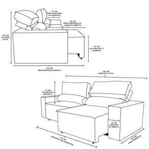 Largura: 180 cm Profundidade: 100 cm Profundidade aberto: 140 cm Altura: 106 cm Peso: 58 kg