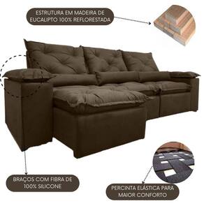 Sofá Reclinável Retrátil Elegante P/ Sala Confortavel 2,70m - Marrom