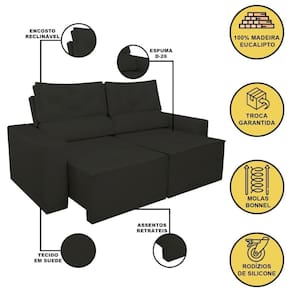 Transforme o seu ambiente com o Sofá Retrátil e Reclinável da Balaqui Decor. Este sofá é a combinação perfeita de conforto, durabilidade e um design moderno, ideal para salas de estar e áreas de descanso.
