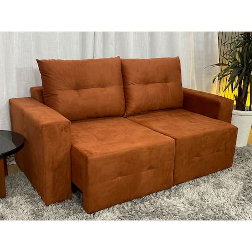 Sofá Retrátil 1,80 m Terracota 604 Esther Nosso Sofá Retrátil Esther é um produto moderno, com design elegante que combina com qualquer ambiente e deixa sua sala ainda mais linda e aconchegante. MEDIDAS DO SOFÁ: Altura: 83 cmLargura: 1.80 mProfundidade fechado: 88 cmProfundidade aberto: 1.24 m Assento: O assento retrátil contem espuma 23, percinta elástica, que proporcionam uma acomodação extremamente confortável. Encosto: Fibra com flocos. Com almofadas soltas. Estrutura: Sua estrutura é com madeira de eucalipto, 100% reflorestada e seca em estufa, e os pés são produzidos em madeira e rodízio de silicone Revestimento: O revestimento é em tecido veludinho, deixando a superfície do sofá muito mais macia.