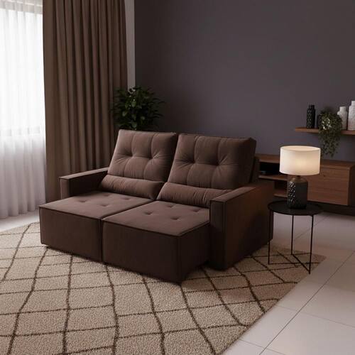 Sofá Luxemburgo conforto e sofisticação em um só móvel. Revestido em veludo, possui assento retrátil e encosto reclinável, unindo design moderno e máximo bem-estar. Perfeito para transformar sua sala em um espaço elegante e acolhedor.