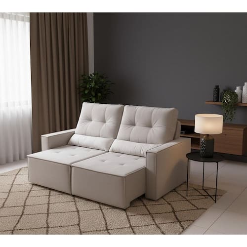 Sofá Luxemburgo conforto e sofisticação em um só móvel. Revestido em veludo, possui assento retrátil e encosto reclinável, unindo design moderno e máximo bem-estar. Perfeito para transformar sua sala em um espaço elegante e acolhedor.