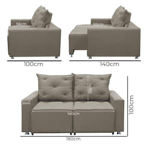 Dimensoes: Altura: 100 cm Largura: 180 cm Profundidade: 140 cm Altura do chao ao assento: 45 cm Largura do Braco: 20 cm Medidas Internas do Assento: 140 x 63 cm Peso: 48,4 Kg