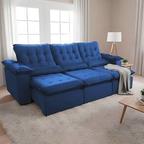 ATENÇÃO: IMAGENS MERAMENTE ILUSTRATIVAS. AS CORES PODEM VARIAR DE ACORDO COM A TELA, MONITOR, ILUMINAÇÃO DO AMBIENTE OU PERCEPÇÃO VISUAL.Sofà RetrÃtil 2.10m Design Elegante Suede Macio e ReclinÃvel Ultra ConfortÃvel Europa Azul