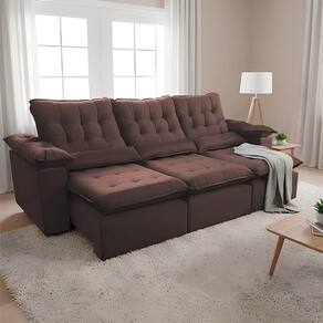 ATENÇÃO: IMAGENS MERAMENTE ILUSTRATIVAS. AS CORES PODEM VARIAR DE ACORDO COM A TELA, MONITOR, ILUMINAÇÃO DO AMBIENTE OU PERCEPÇÃO VISUAL.Sofà RetrÃtil 2.50m 3 Lugares ReclinÃvel com Estofado Premium e Durabilidade Superior Europa Marrom