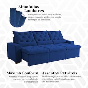 Sofá Retrátil 250m Suede Vibrante Reclinável e Conforto Amplo para Valorizar Sua Sala Milão Azul