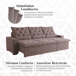 ATENÇÃO: IMAGENS MERAMENTE ILUSTRATIVAS. AS CORES PODEM VARIAR DE ACORDO COM A TELA, MONITOR, ILUMINAÇÃO DO AMBIENTE OU PERCEPÇÃO VISUAL.Sofà RetrÃtil 2.50m Supreme Estofado de Alta Qualidade com Toque Suave em Suede Luxo MilÃo Bege