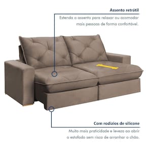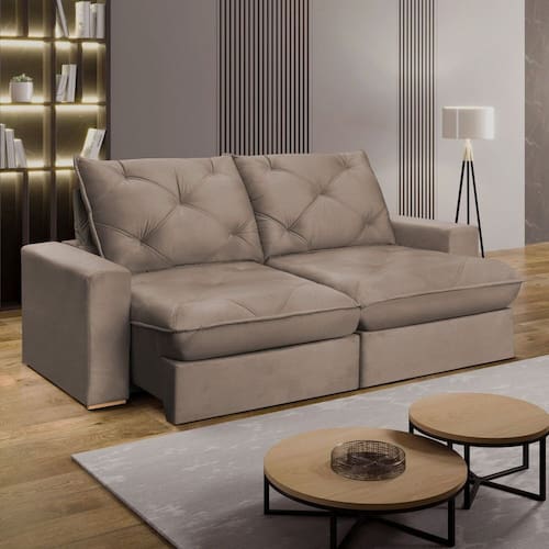 Sofá com pillow top é mais confortável? Sim! O pillow top de 25 cm garante maciez extra e sensação de abraço, perfeito para relaxar após um dia corrido.