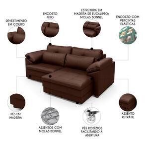 Sofá Retrátil 3 Lugares Para Sala 250cm Dijon Couro Caramelo S07