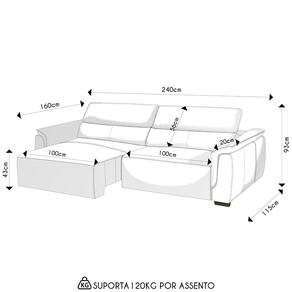 Dimensões do Produto Largura: 240 cm. Altura: 93 cm. Profundidade: 115 cm. Peso: 89 kg.