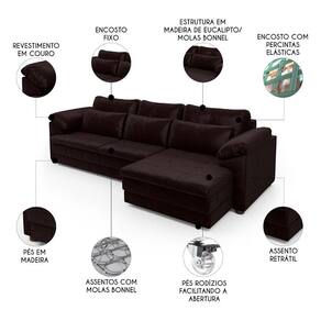 O revestimento em Couro traz um toque de sofisticação ao seu ambiente, além de ser fácil de limpar e manter. Já os pés em madeira maciça tingida garantem um visual refinado, complementando a estética do Sofá 4 Lugares. O design bipartido, com módulo, oferece flexibilidade para integrar-se a diversos estilos de decoração, adaptando-se a diferentes cômodos.