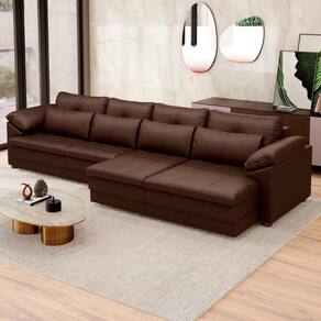 Sofá Retrátil 4 Lugares Para Sala 379cm Dijon Couro Caramelo S07