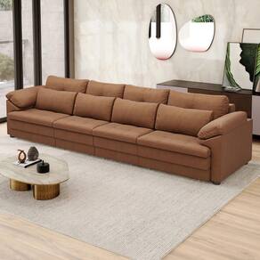 Sofá Retrátil 5 Lugares Para Sala 414cm Dijon Couro Mel S07