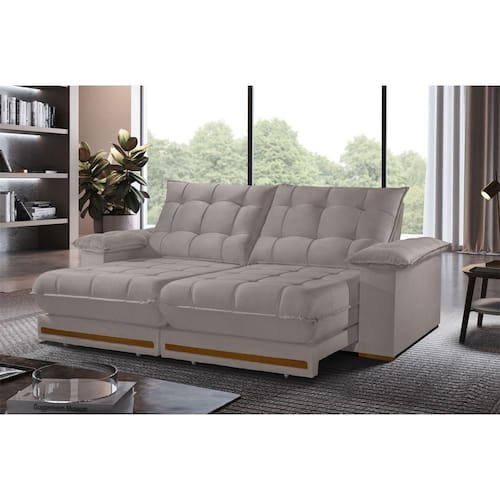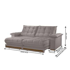 Dimensoes: Altura: 112 cm Largura: 290 cm Profundidade Fechado: 120 cm Profundidade Aberto: 180 cm (com encosto reclinado) Peso: 124 kg