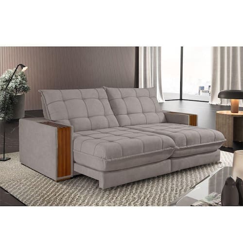 Sofá Retrátil Berlim 2,10m 3 Lugares Molas Ensacadas Txr Bege Sofa Retratil Berlim 2,10M 3 Lugares Molas Ensacadas TXR: Suavidade e conforto em sua casa com o Sofa BERLIM que possui encosto reclinavel, assento com Pillow de molas ensacada, fibra siliconada, assento retratil com rodizios que facilitam seu movimento. Caracteristicas: Tipo: Sofa 3 lugares Retratil e Reclinavel Marca: TXR Modelo: Berlim Estrutura: Madeira de origem certificada, Eucalipto Revestimento: Em tecido Pes: Em madeira reflorestada Assento: Retratil Pillow de molas ensacadas com espuma D28 Encosto: Reclinavel em 5 estagios, 100 fibra de silicone Bracos: 25 cm c/Aplique de Madeira Retratil e Reclinavel: Com mecanismo em aco