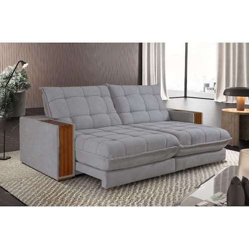 Sofá Retrátil Berlim 2,90m 5 Lugares Molas Ensacadas Txr Prata