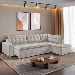 Sofá Retratil Com Chaise Direita Titan 4 Lugares 2,56m Tecido Linho Cor Cru 2320