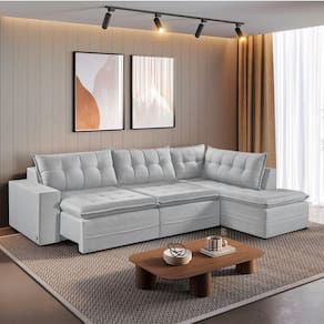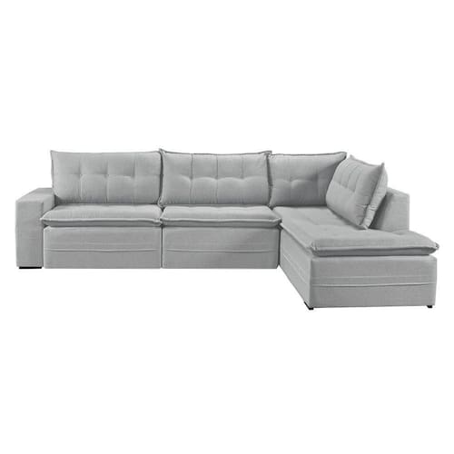 Sofá Retratil Com Chaise Direita Titan 6 Lugares 2,96M Tecido Linho