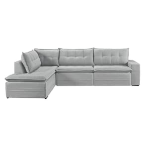 Sofá Retratil Com Chaise Esquerda Titan 6 Lugares 2,96M Tecido Linho