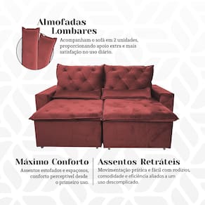 Sofá Retrátil Confort Suede 150m Modelo Retrátil e Reclinável com Dois Módulos Milão Terracota - Laranja